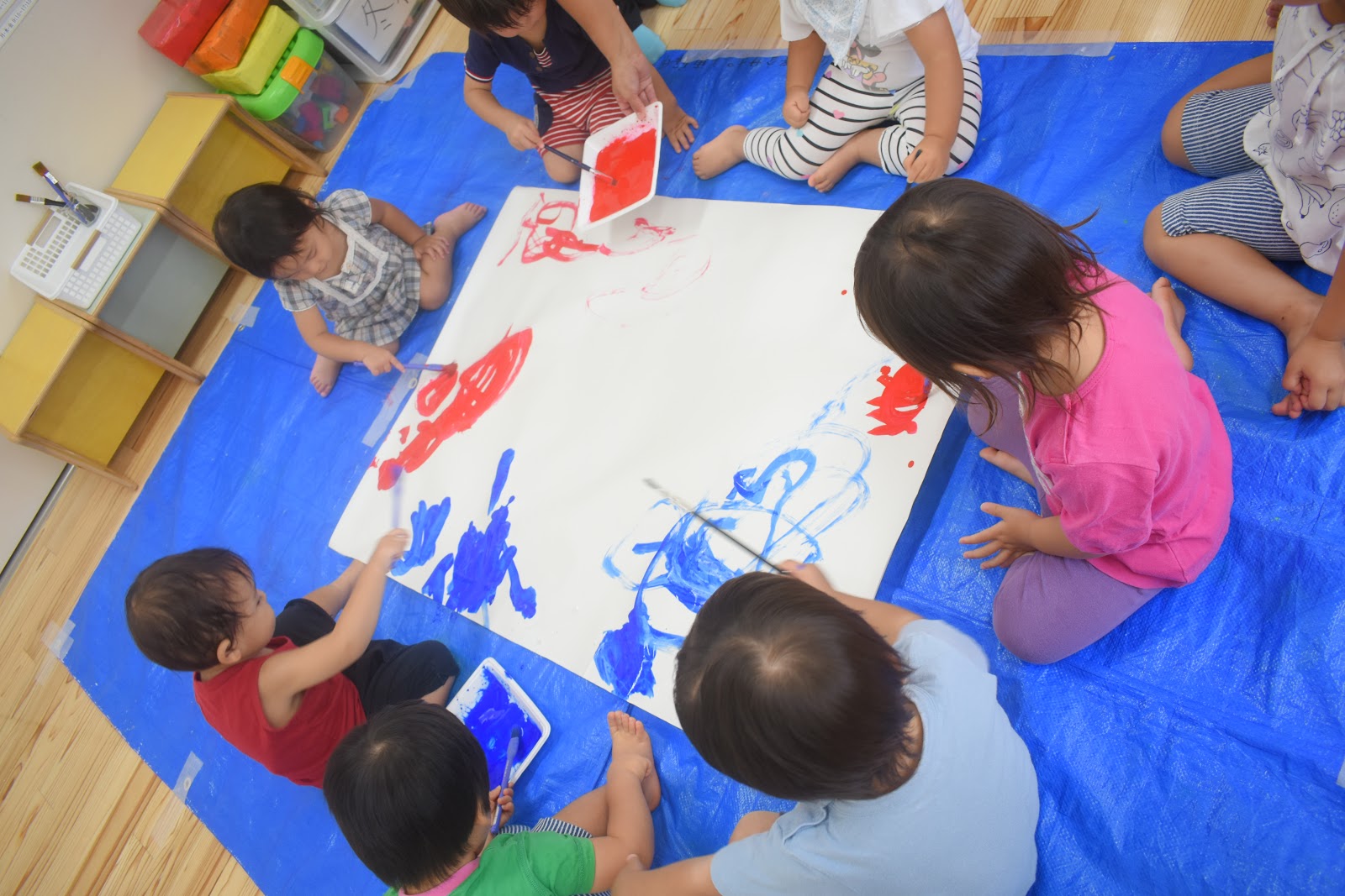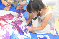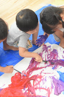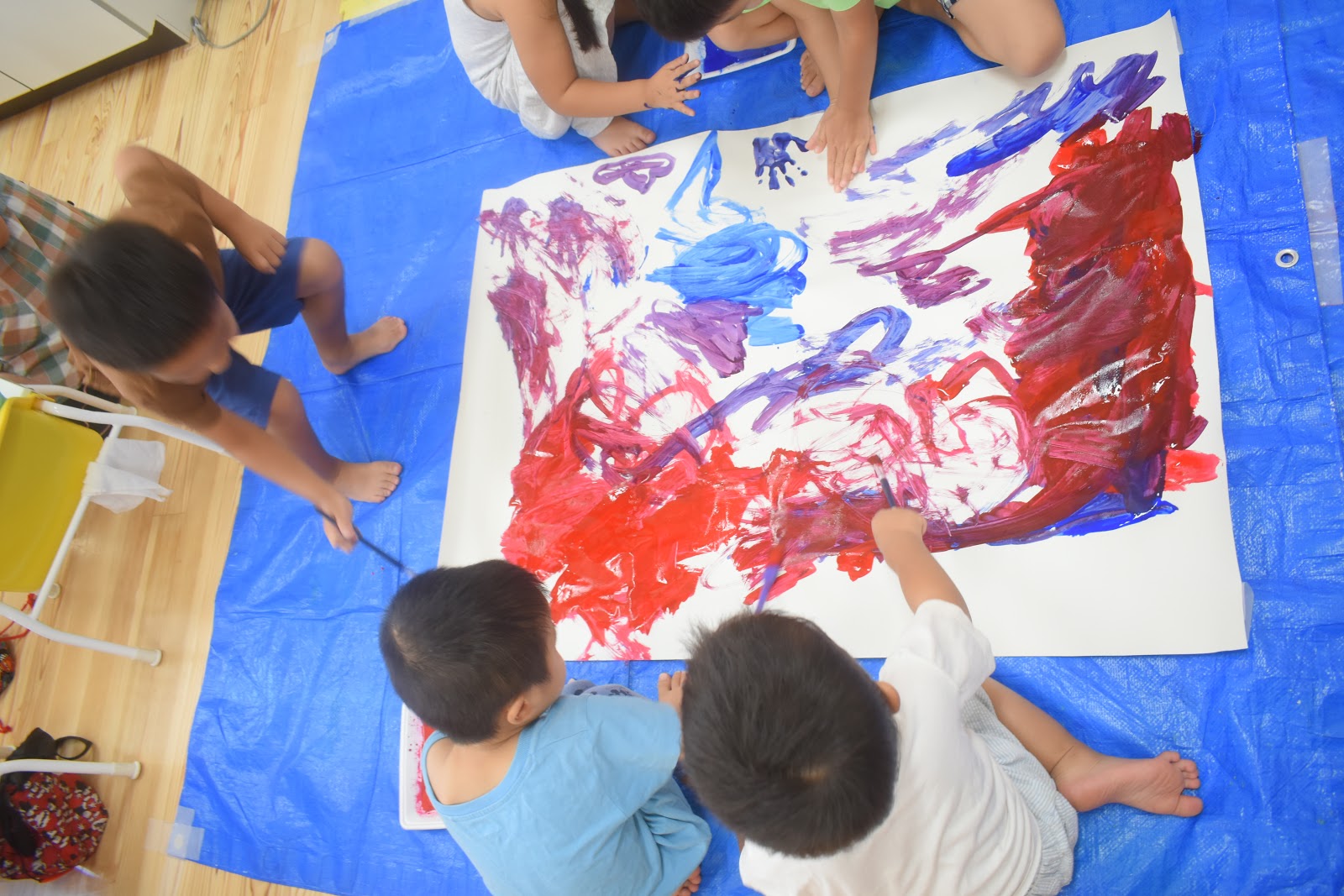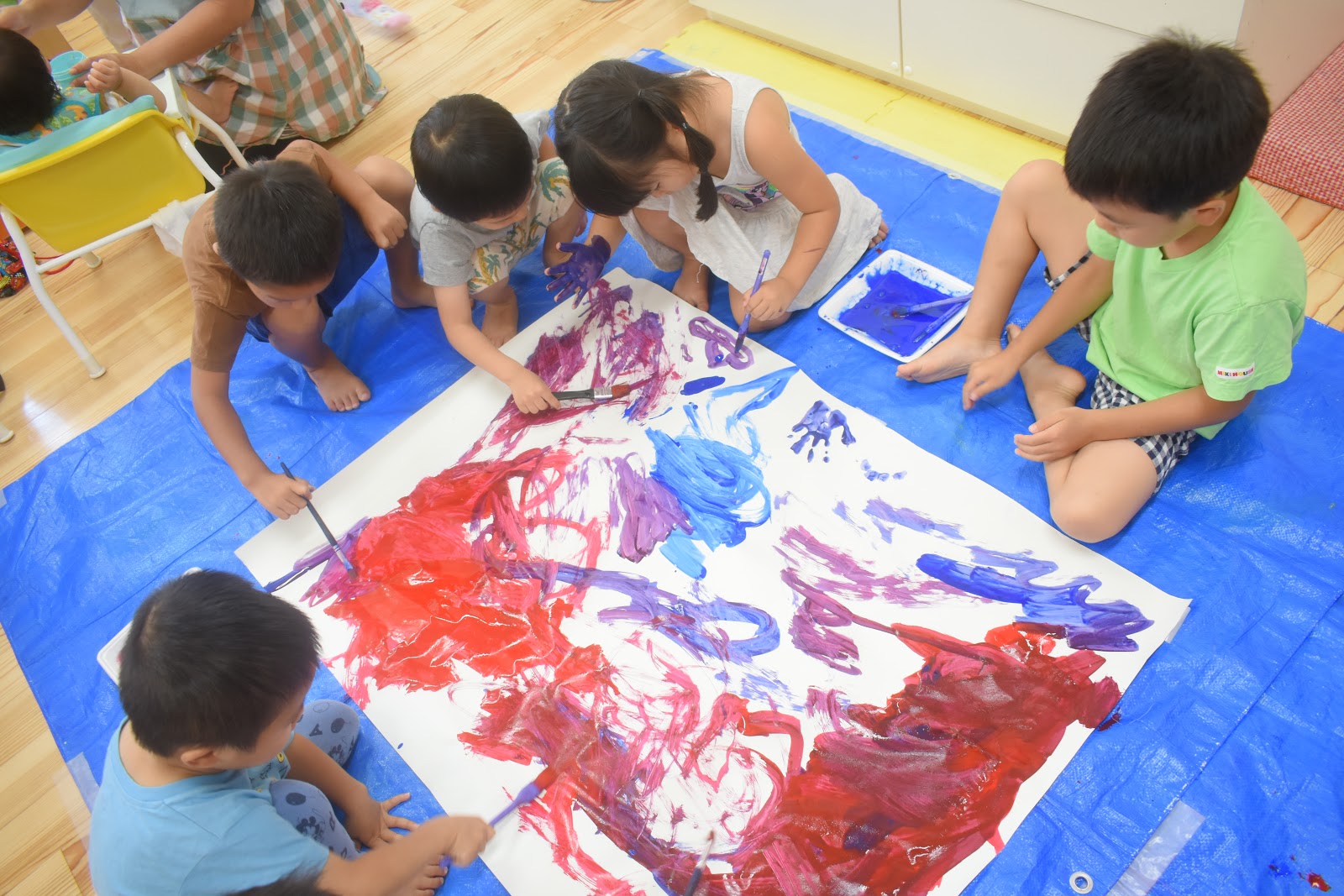 手に絵の具が付いてからはアーティスティックに