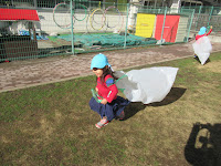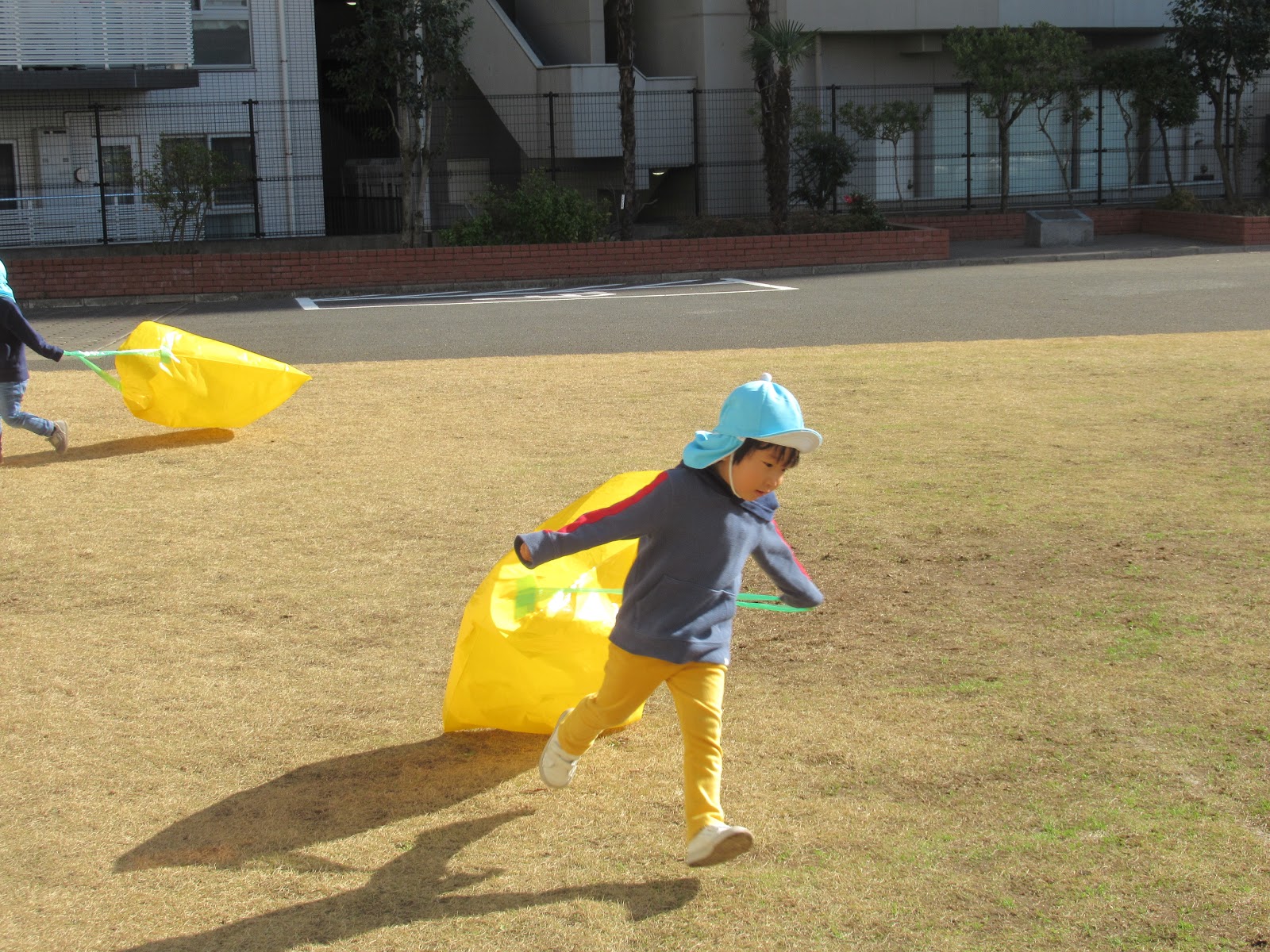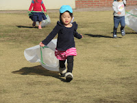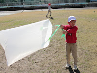 1月だというのに、ポカポカ陽気に誘われ、校庭で凧上げ